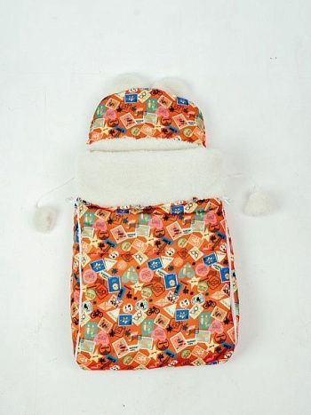 Конверт детский меховой на выписку "Марки" 82*42 (до 6 мес), 100*46 (до 1 года)