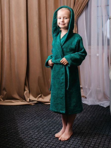 Халат махровый детский с капюшоном изумруд
