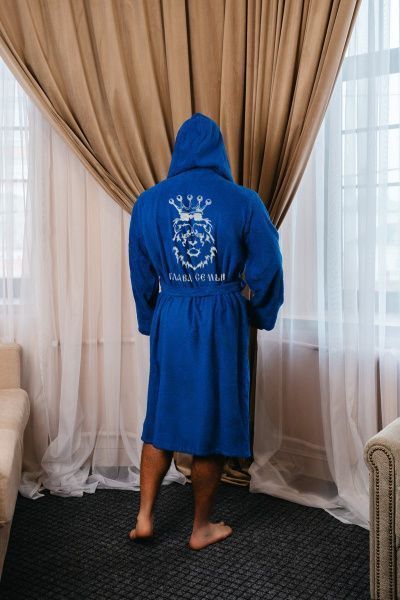 Халат махровый с капюшоном, темно-синий с вышивкой