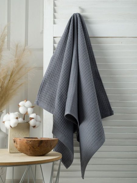 Полотенце вафельное серое 100х150