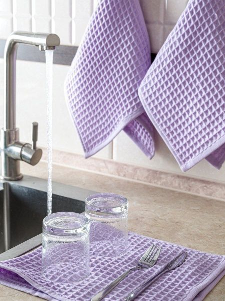 Набор вафельных полотенец 3 шт (30*60) сиреневые