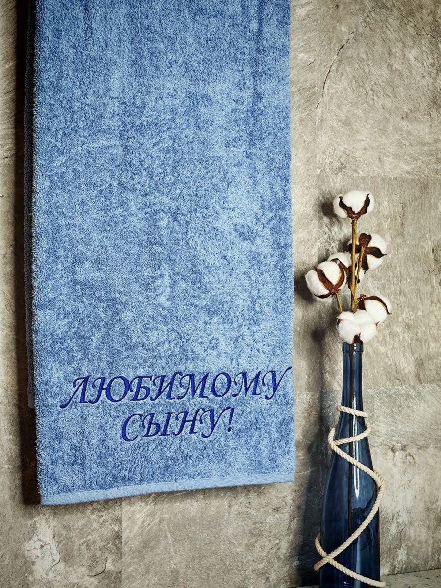 Полотенце с вышивкой 70*140 "Любимый сын" лазурный POL/любим_сын_ЛАЗУРЬ