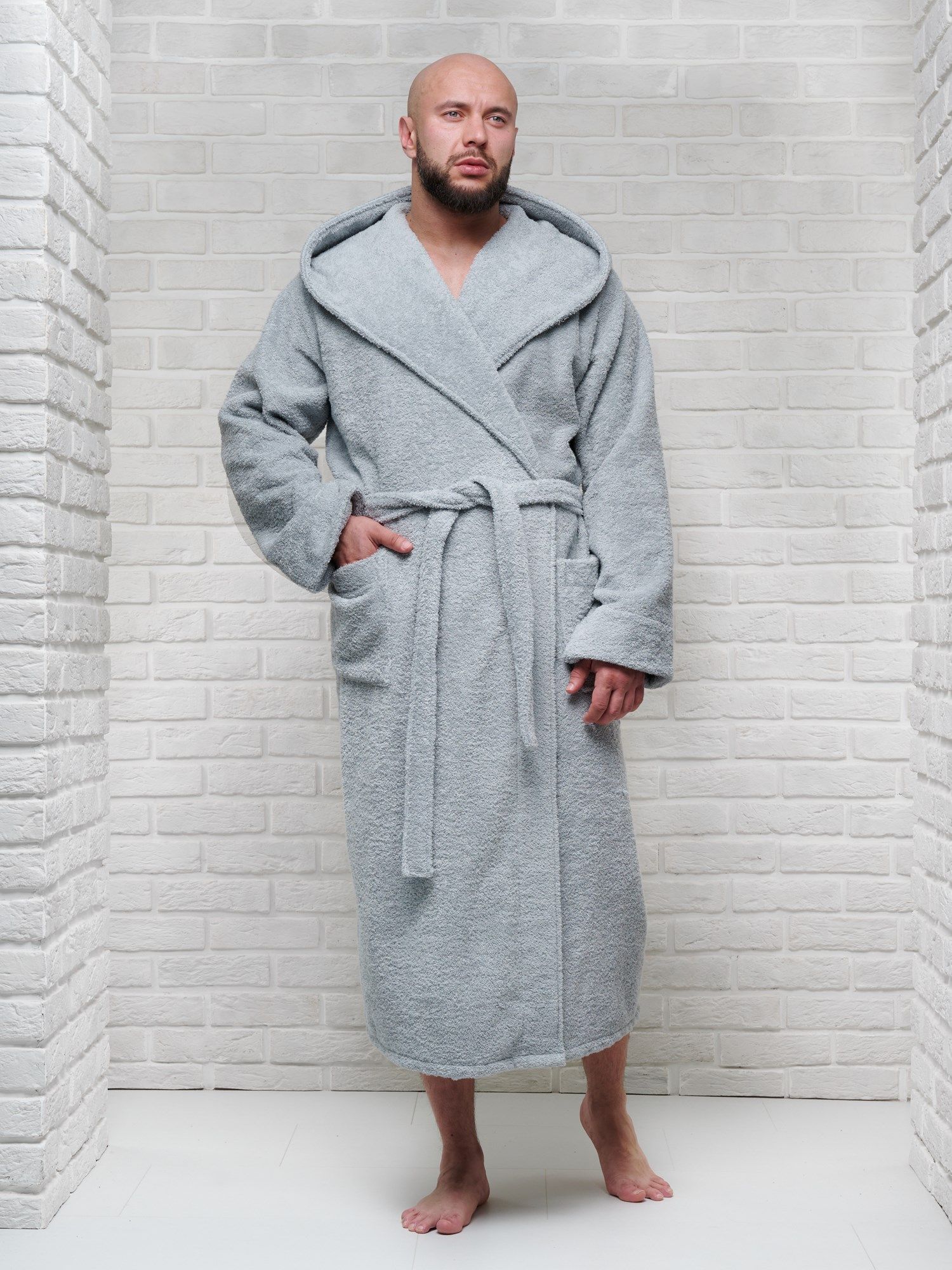 Халат мужской махровый PandaHug с капюшоном, светло-серый