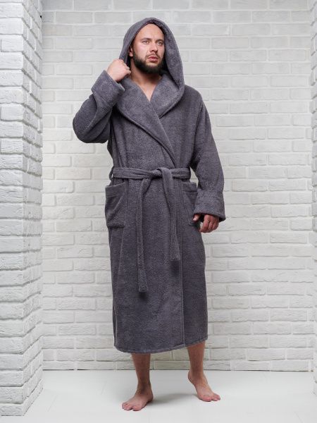 Модель халата с поясом позволяет ему быть универсальным и подходит к любому типу телосложения, скрывая недостатки и подчеркивая достоинства фигуры. Наличие карманов делает его практичным для ношения дома, в бане или сауне, а также на отдыхе.