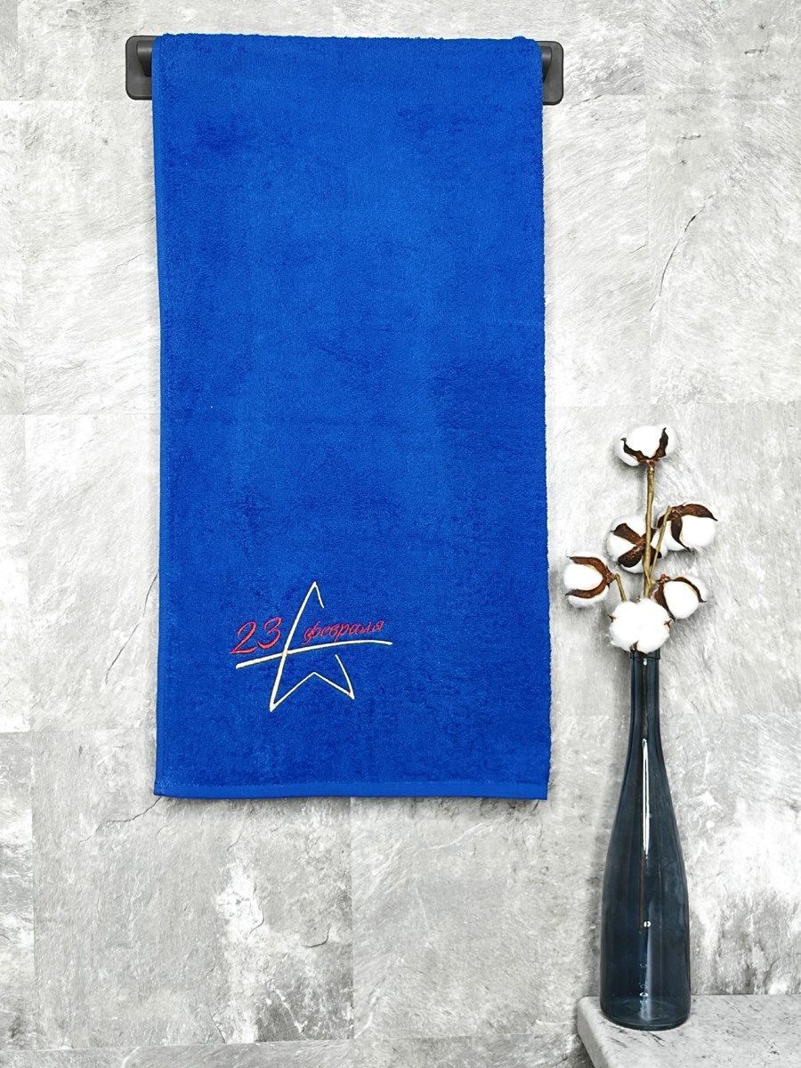 Полотенце с вышивкой 70*140 "23 февраля" васильковый