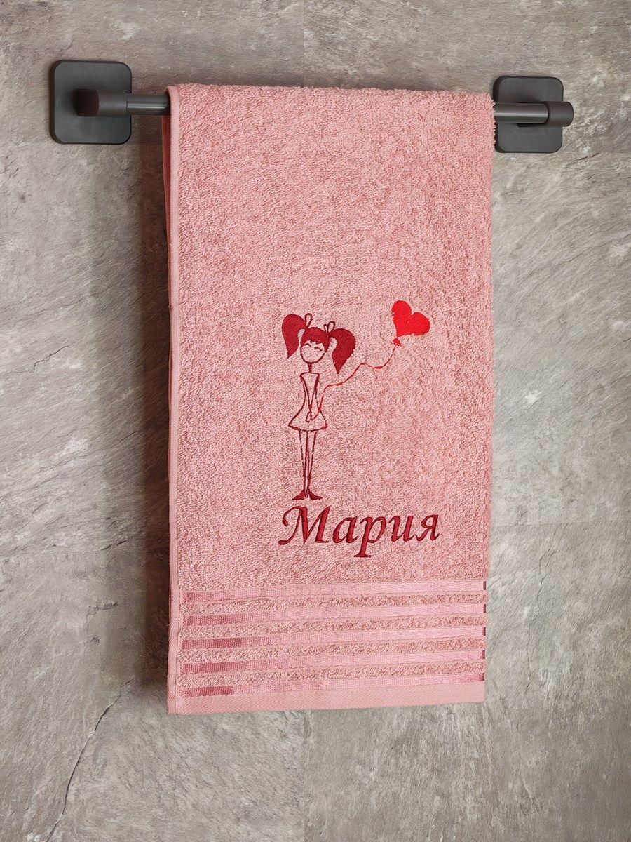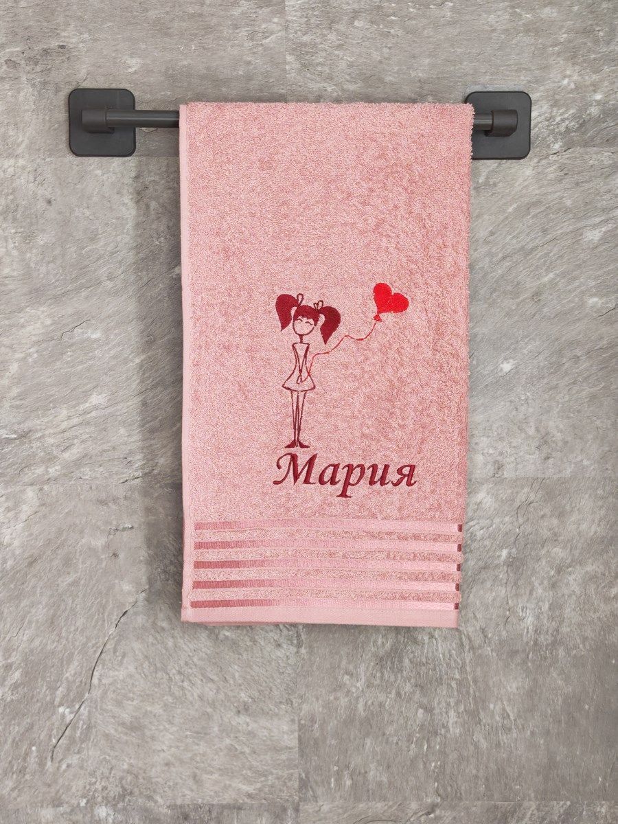 Полотенце с вышивкой 50*90 "Мария" розовое POL/девочка_Мария_роз.полоса