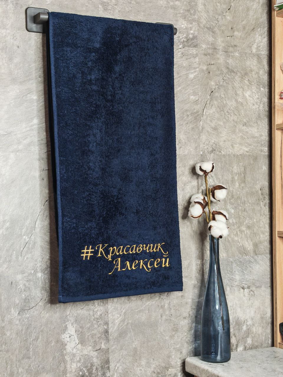 Полотенце с вышивкой 70*140 "красавчик" Алексей темно-синее
