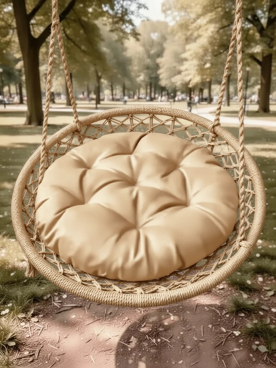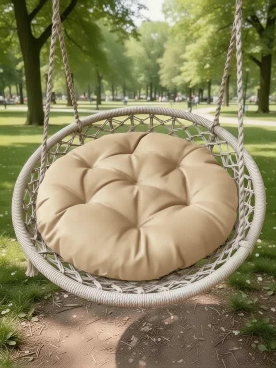 Универсальный размер: 60×60 см — идеально ложится в стандартные посадочные места большинства садовых качелей, кресел-коконов и подвесных кресел.