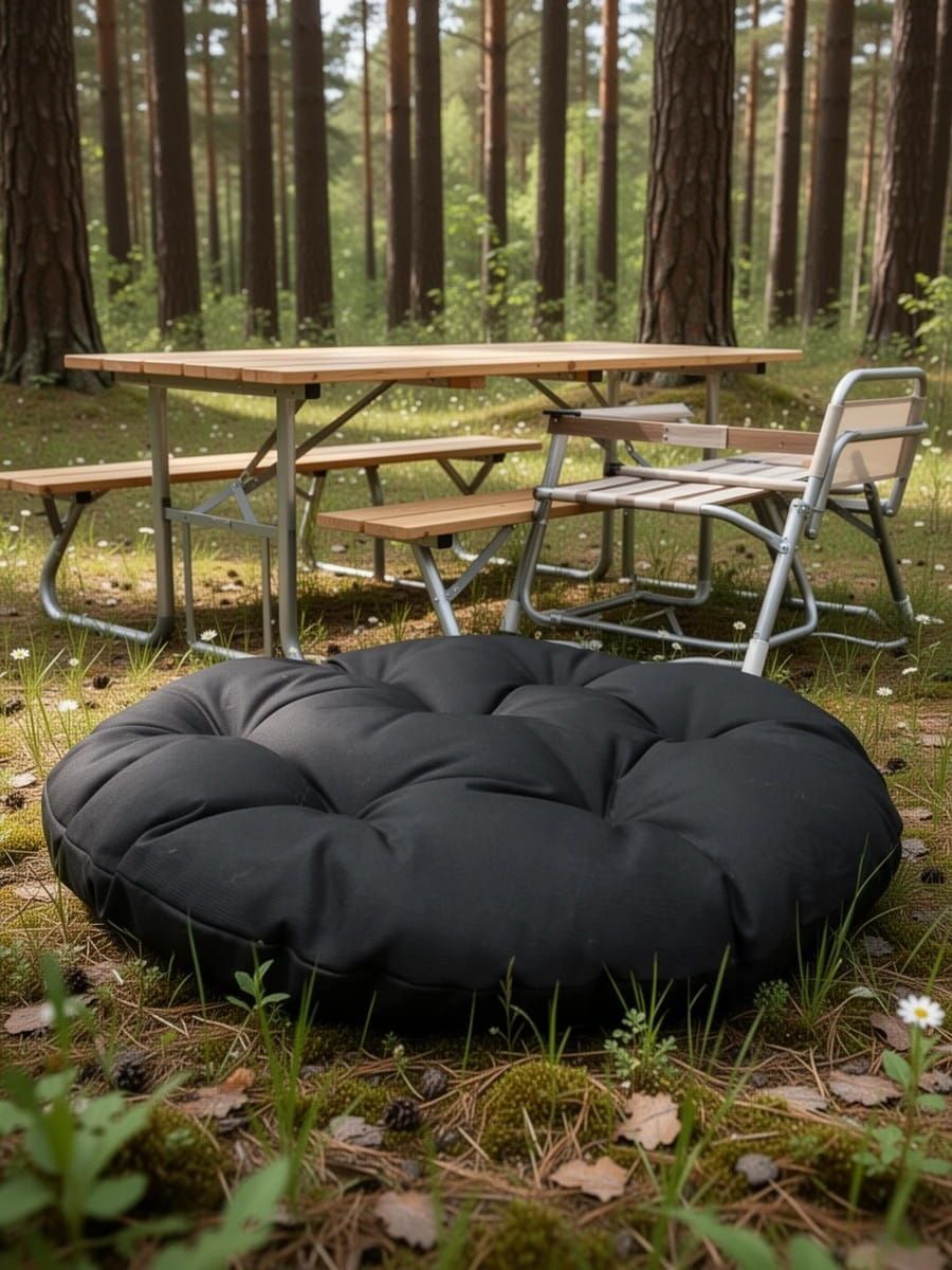 Универсальный размер: 60×60 см — идеально ложится в стандартные посадочные места большинства садовых качелей, кресел-коконов и подвесных кресел.