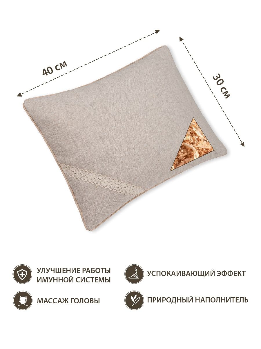 Кедровая стружка делает подушку упругой и обеспечивает ортопедическую поддержку шеи и головы во время отдыха.