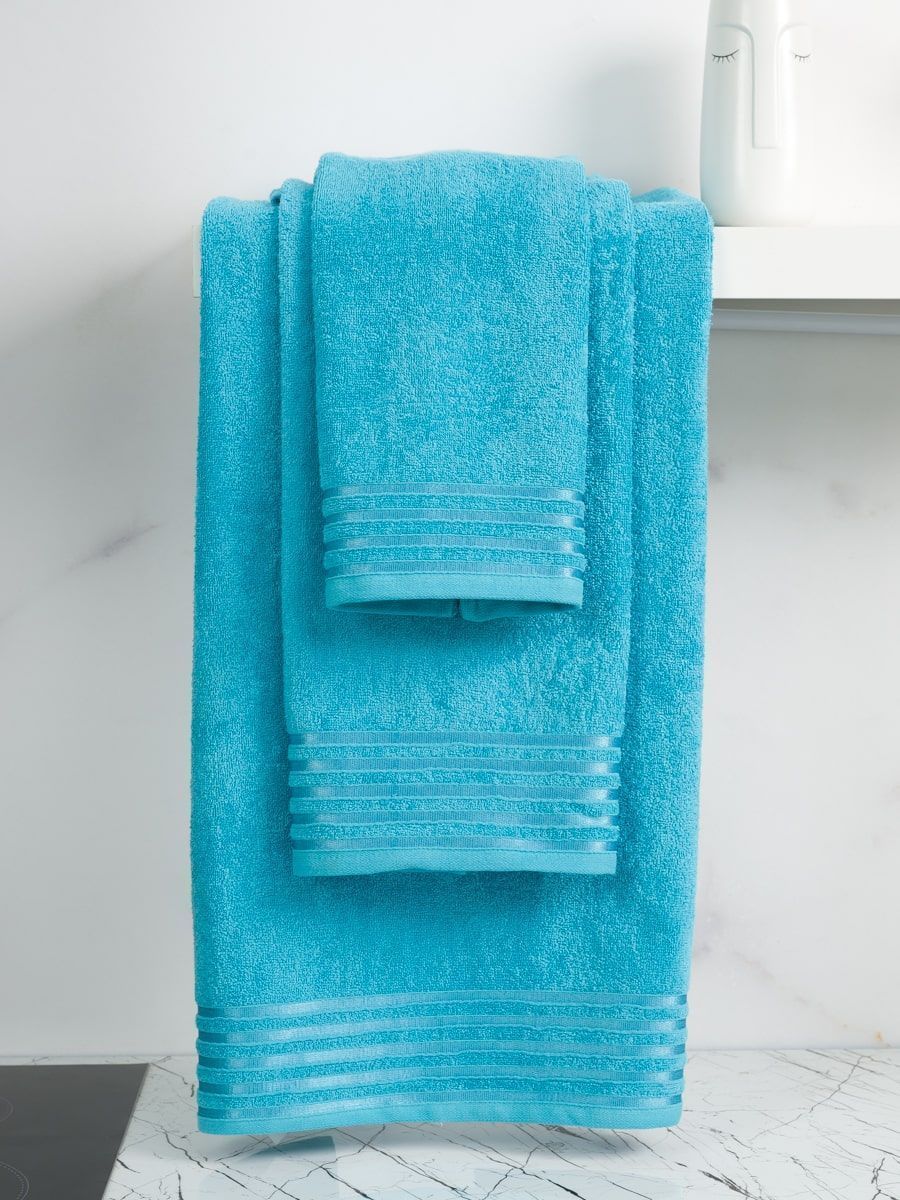 Махровое полотенце для душа синего цвета с отделкой в виде атласных полос. Оно приятно не только внешне, но и на ощупь: мягкое, теплое, комфортное. Плотно расположенные петельки махры быстро высушат и согреют кожу после водных процедур. А благодаря универсальному цвету и размеру такое махровое полотенце подойдет всей семье. Полотно изготовлено в Узбекистане , который издавна славится производством махровых изделий высочайшего качества. В составе ткани 100% хлопок, что гарантирует высокую впитываемость, экологичность и гипоаллергенность изделия. Полотенце обладает высокой износостойкостью и не требует особого ухода. При соблюдении условий стирки оно не деформируется и не теряет цвет, сохраняя свой первоначальный вид долгие годы.