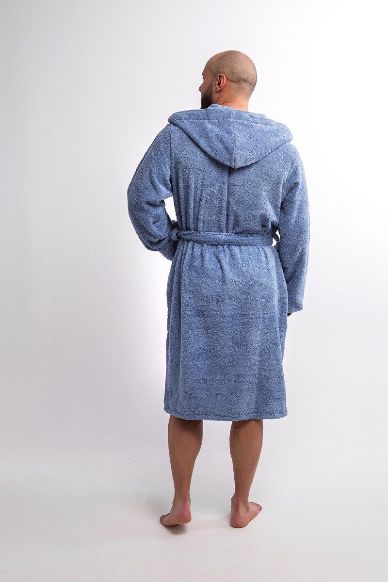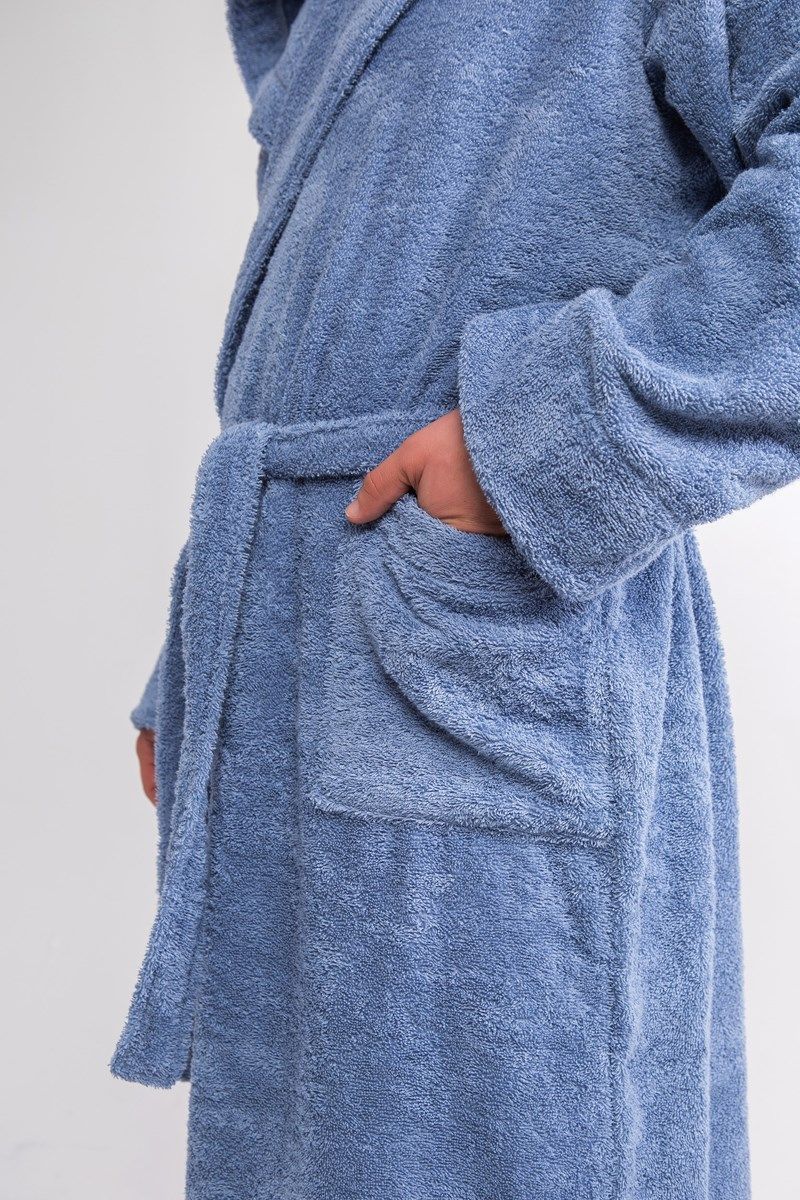 Халат махровый с капюшоном лазурь