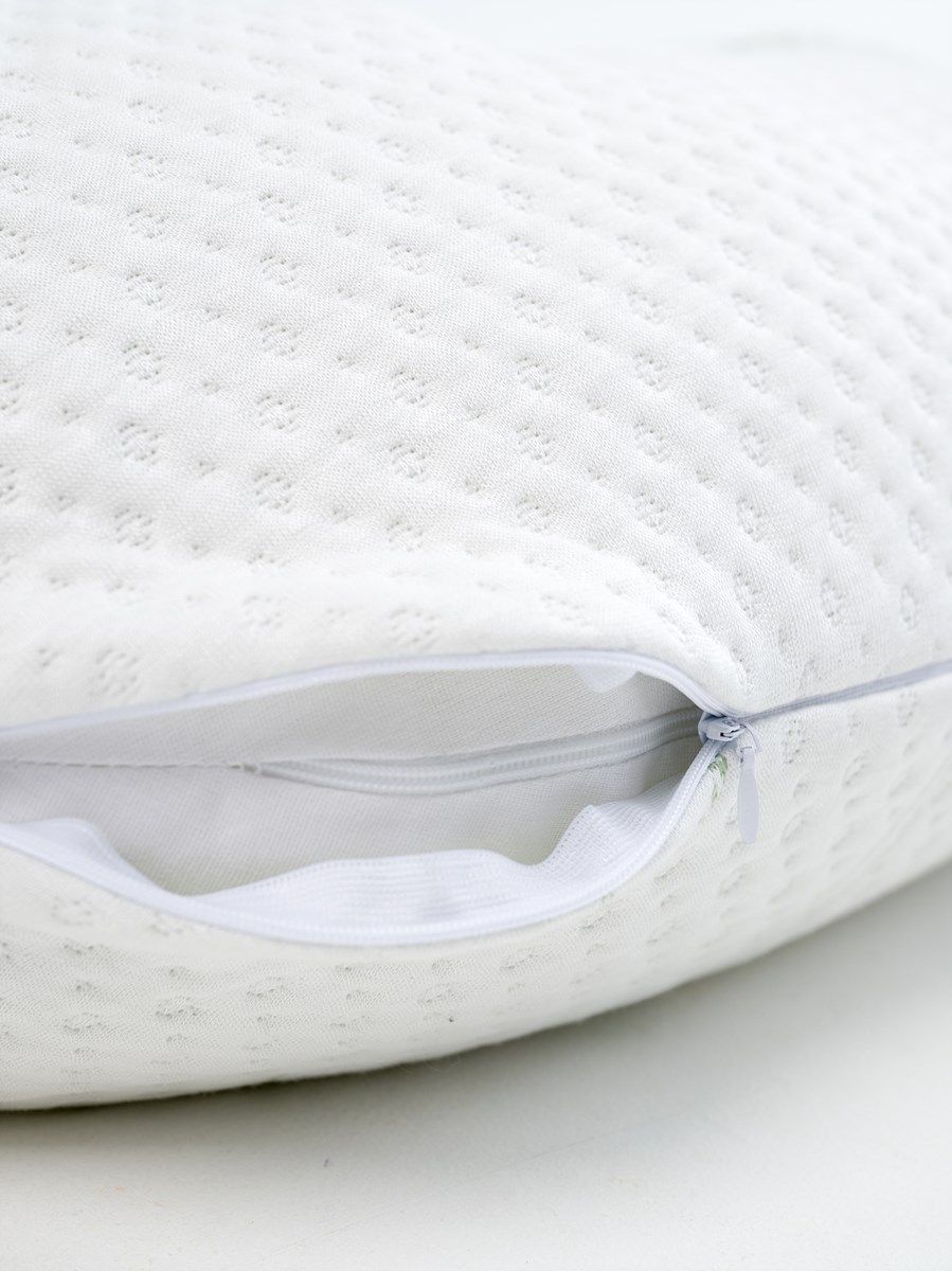 Подушка-подкова "BAMBOO" наполнена гипоаллергенным материалом — искусственным лебяжьим пухом. Воздушный наполнитель не теряет со временем своей мягкости и пышности: его достаточно слегка взбить. Верхний чехол на молнии из бамбуковой ткани нежный и приятный на ощупь — спать на нем одно удовольствие!