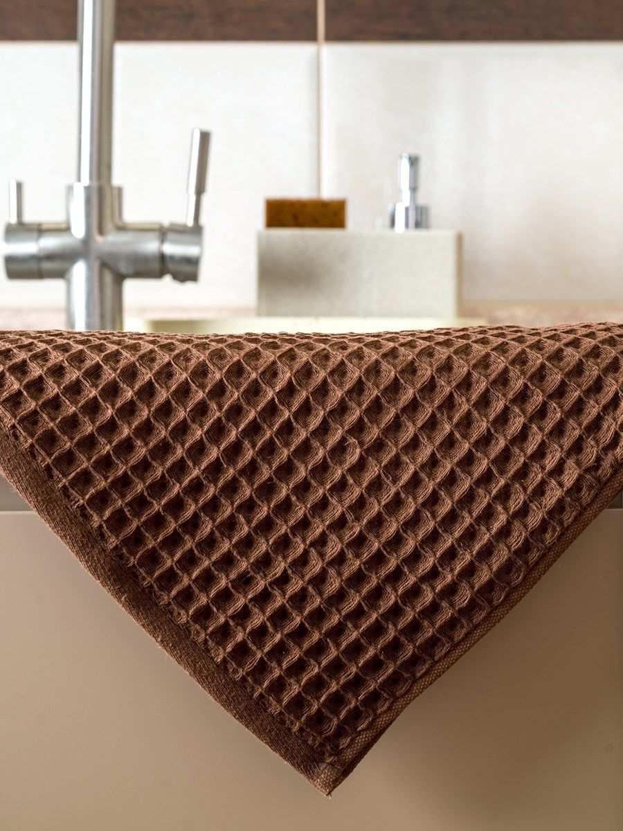 Полотенца изготовлены из вафельной ткани высокого качества с рельефным безворсовым плетением в виде крупной мягкой клетки. Эти полотенца намного толще и пышнее привычных вафельных полотенец. Благодаря особому плетению и крупной клетке ткань получилась мягкой и очень воздушной. При соприкосновении с кожей она не вызывает раздражения или неприятных ощущений. Нежное как облачко, это полотенце идеально подойдет малышам и людям, которые ценят свой комфорт. Вафельное полотно произведено из 100% хлопка на современном  итальянском оборудовании в Республике Узбекистан. Оно обладает высокой прочностью и износостойкостью, что обеспечивает изделиям из него долгий срок службы и практичность в использовании. Даже после многократных стирок изделие не линяет, не деформируется и полностью сохраняет свои свойства.