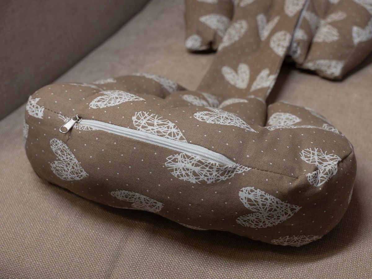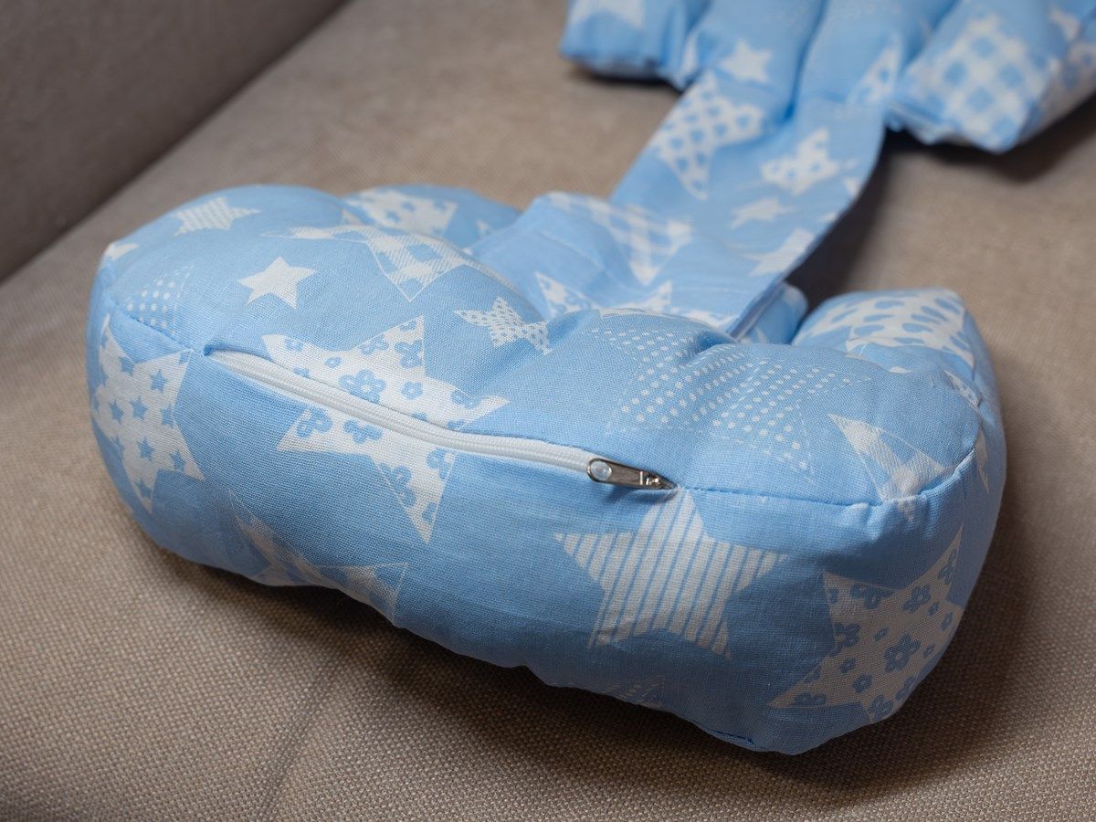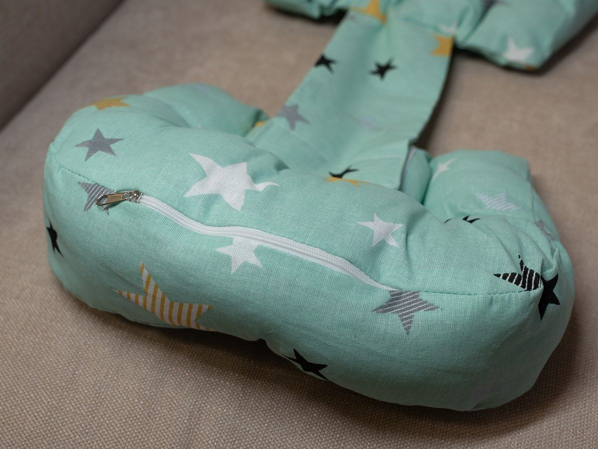 Размер регулируется в зависимости от триместра беременности. Это делает подушку более универсальной и многофункциональной. Её также можно использовать во время кормления ребёнка.