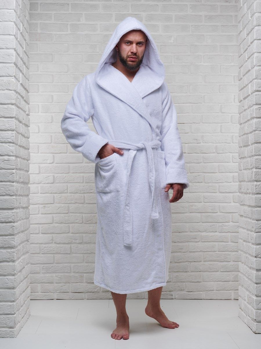 Халат мужской махровый PandaHug с капюшоном, белый