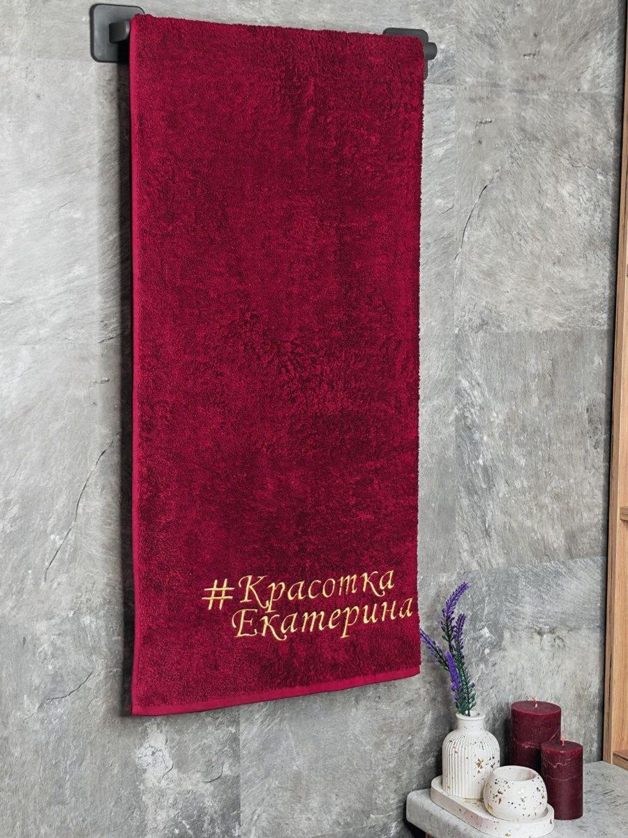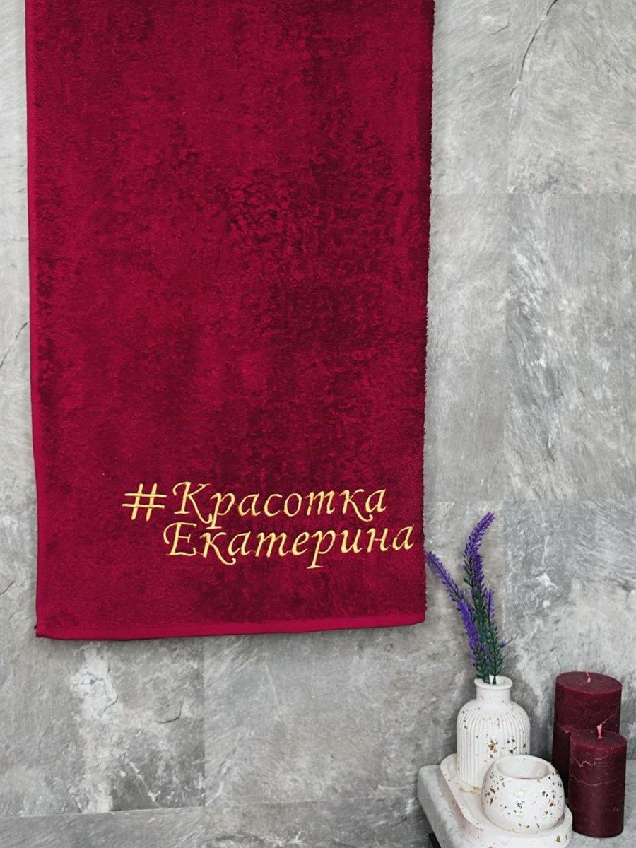 Полотенце с вышивкой 70*140 "Красотка Екатерина" бордо