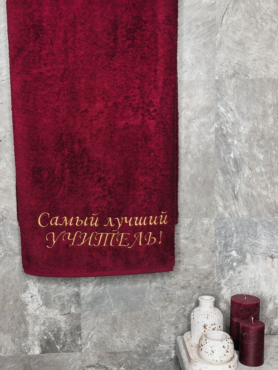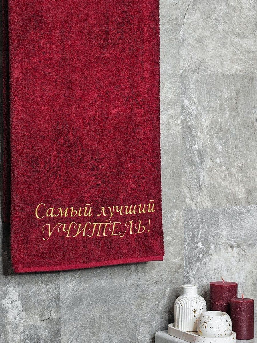 Полотенце с вышивкой 70*140 "Лучший УЧИТЕЛЬ" бордо
